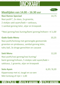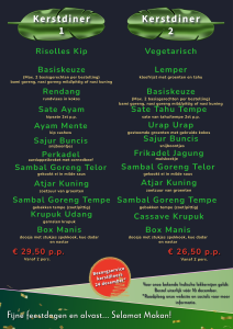 •Bestelling overige menu’s, zoals een rijsttafel, vanaf 6 personen.