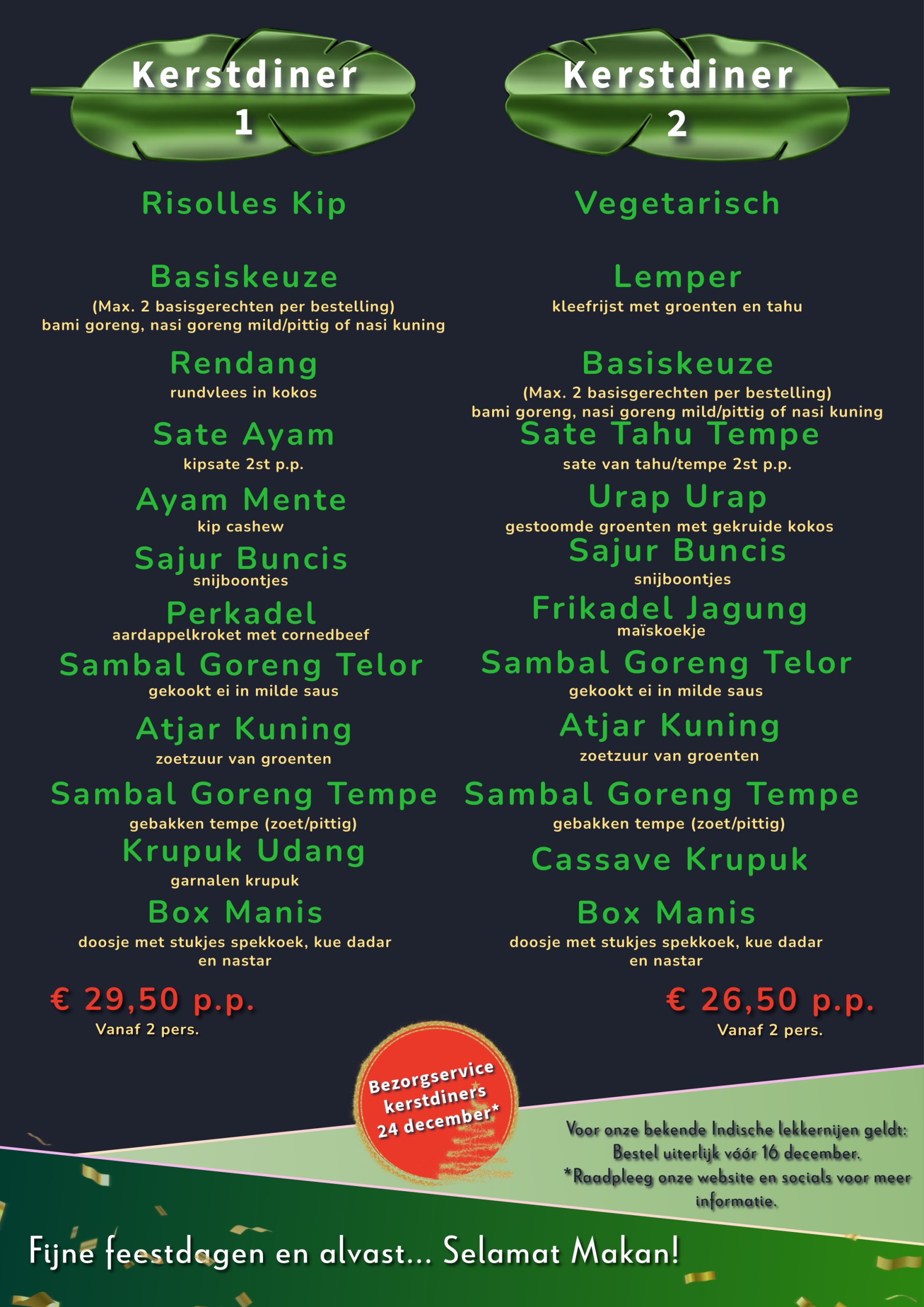 Voor uw gemak en ter voorkoming van eventuele wachttijden bij het afhalen van uw Kerstmenu – bestelling, hebben wij ook dit jaar weer een bezorgservice. De voorwaarden hiervoor zijn: