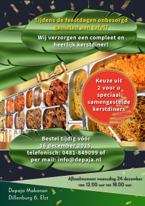 Depaja Makanan is de eerste Indische toko van Elst (Gld) en gevestigd midden in het centrum van het dorp aan het plein. Depaja Makanan is een moderne frisse toko, die ademt ook de warme Indische sfeer uit. Door de halfopen keuken kunt u zien hoe de snacks, lunches en maaltijden vers worden bereid.