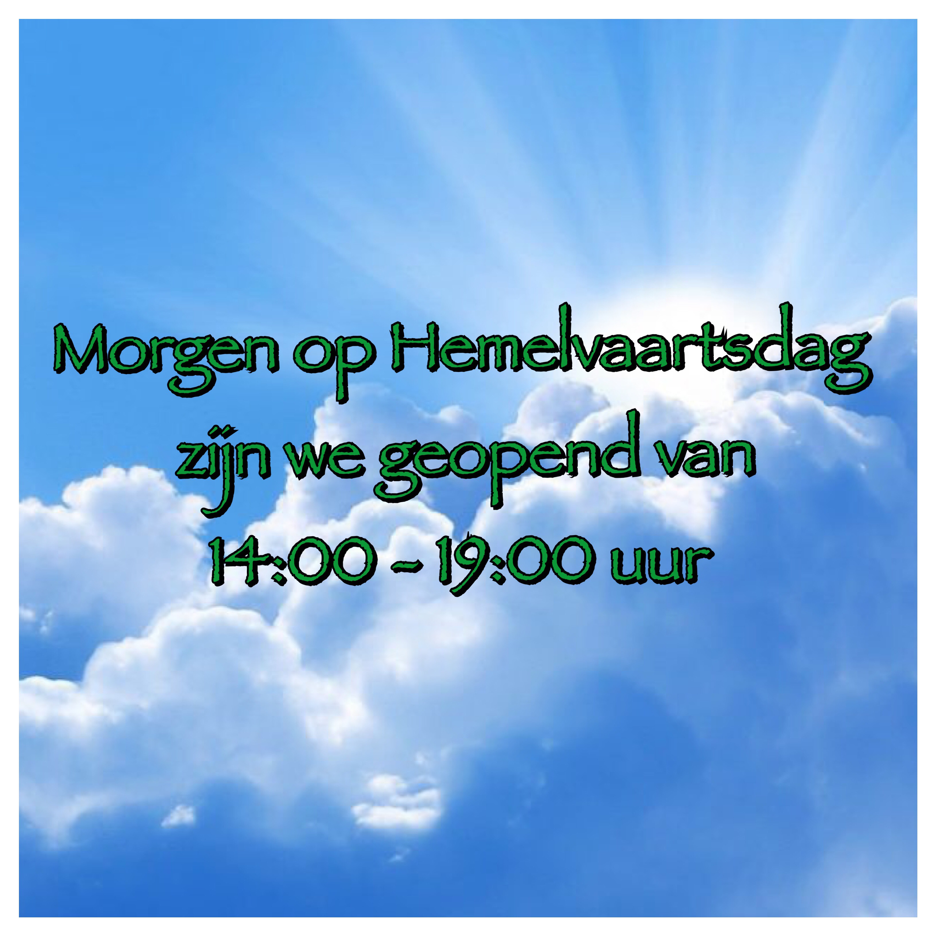 Wij zijn weer op de woensdagen geopend! Morgen van Wij zijn weer op de woensdagen geopend! Morgen vanaf 14.00 uur staan we klaar om voor jullie te scheppen.